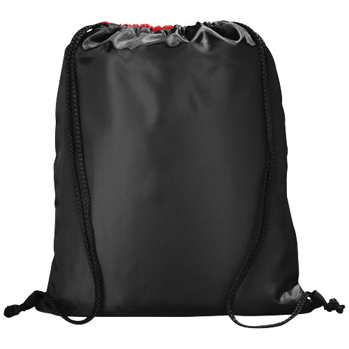 | Opis | Peek zippered pocket drawstring backpack. Open main compartment with drawstring rope closure. Zippered front pocket with earbud port. Earbuds not included. 210D Polyester. |