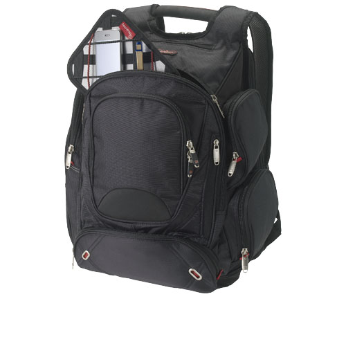 | Opis | This exclusive design has a designated laptop-only section that unfolds to lay flat on an x-ray belt to increase speed, convenience and security. Side entry laptop compartment holds up to 17" laptops. Main zippered compartment with file divider, interior side pockets and removable TechTrap elastic organiser panel. Zippered media pocket accesses ear bud port. Front zippered pocket and key fob. Front lower & hidden pockets for valuables. 3 side roomy zippered pockets. Back panel designed to slip over trolley handles. |